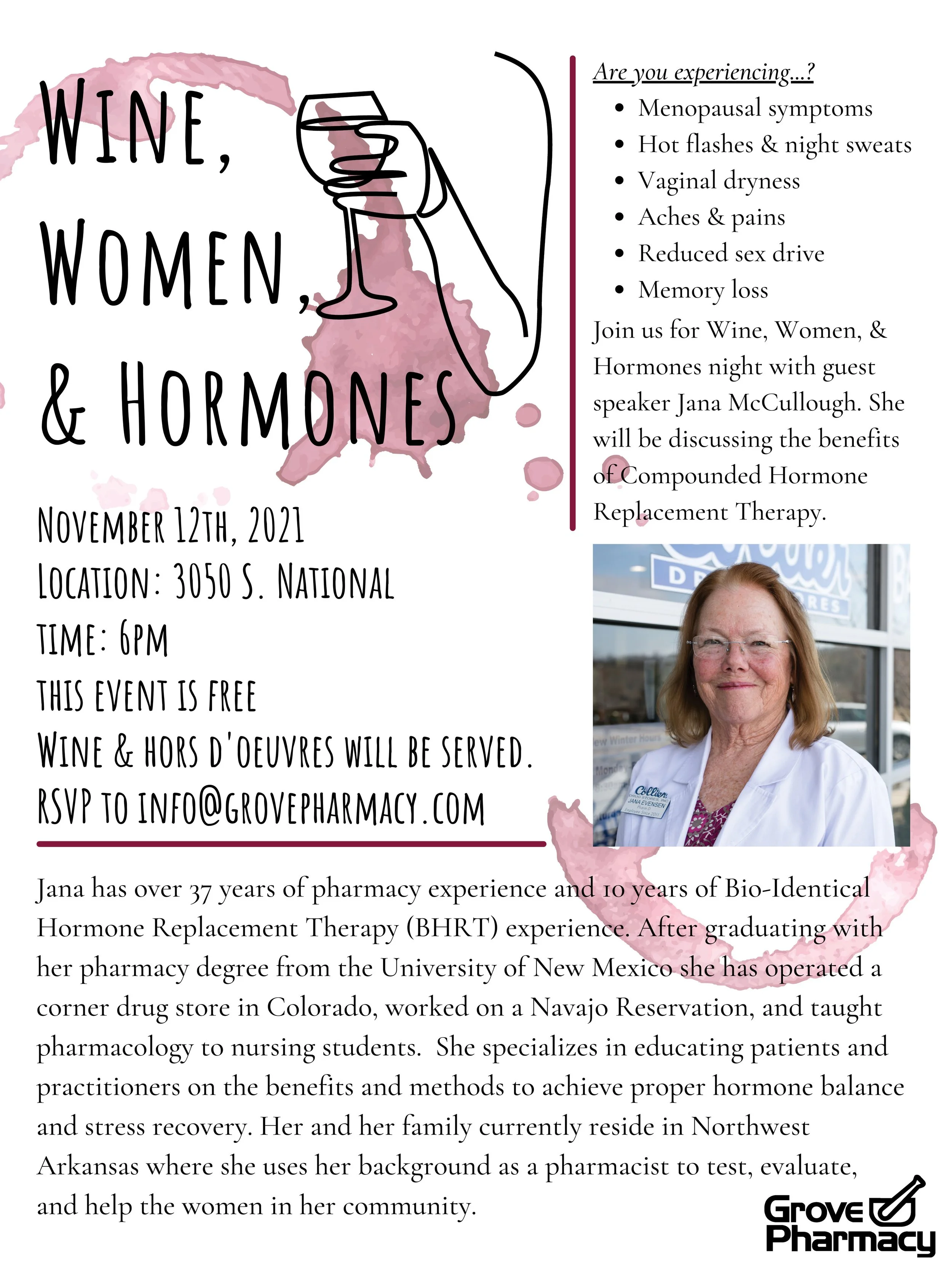 Join us for our Wine, Women, & Hormones night with guest speaker Jana McCullough.